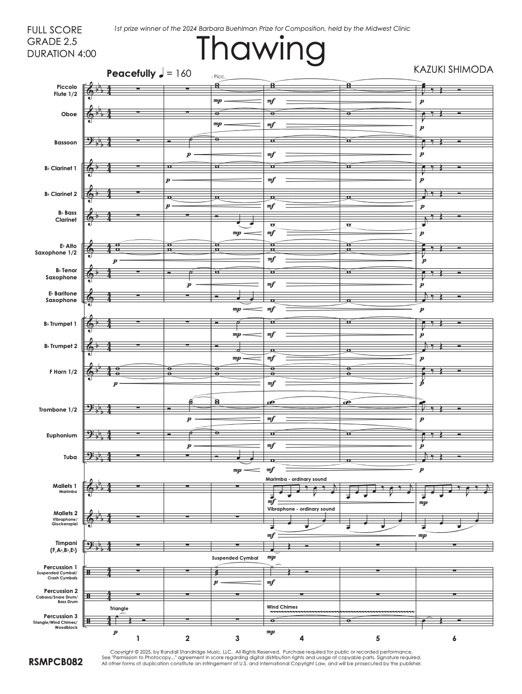 長らく告知していませんでしたが、「Thawing(雪解け)」(ミッドウェスト・クリニック主催 2024年バーバラ・ビュールマン作曲賞第1位受賞作品)の楽譜がアメリカの人気楽譜出版社「ランダル・スタンドリッジ・ミュージック」から出版されております!
